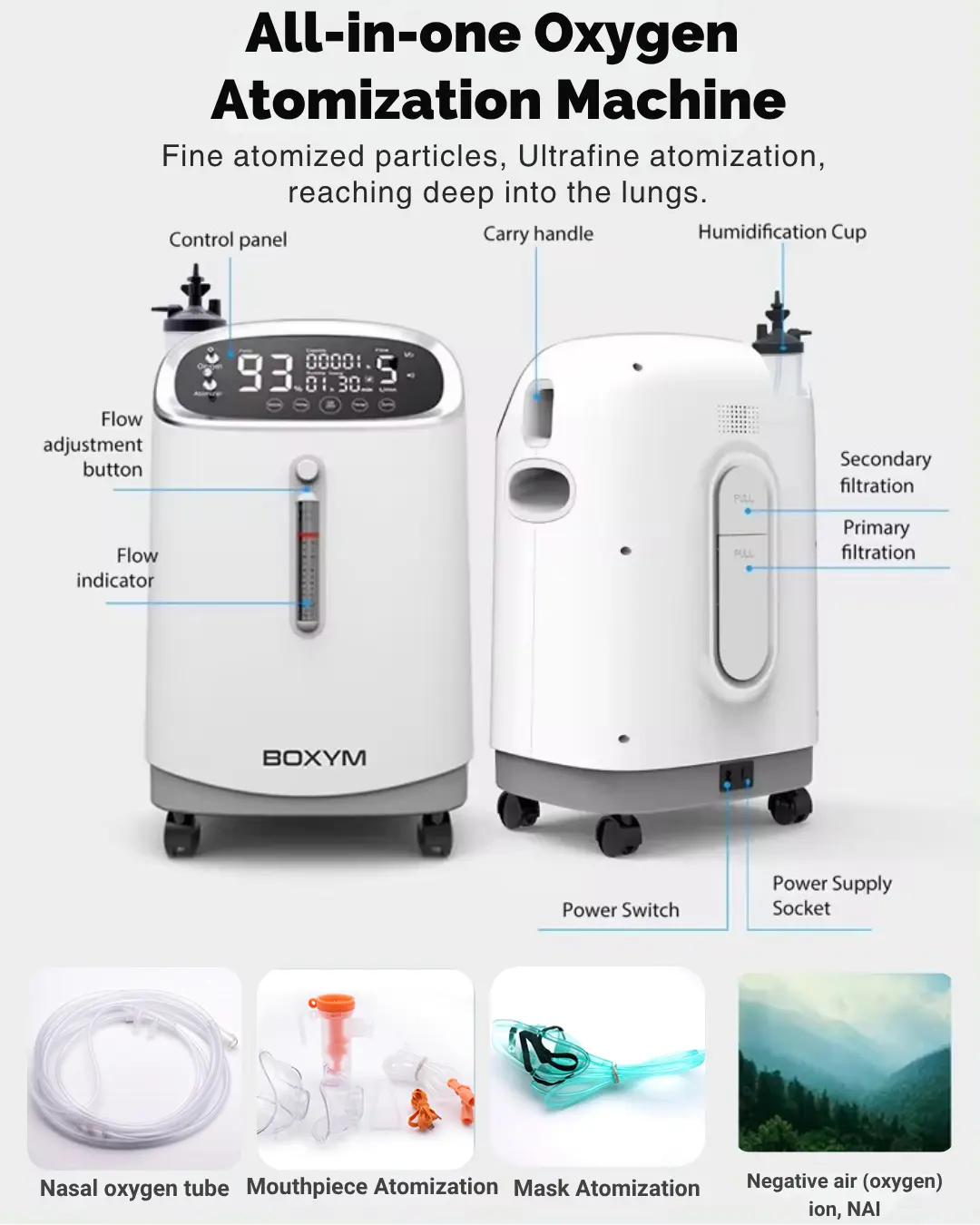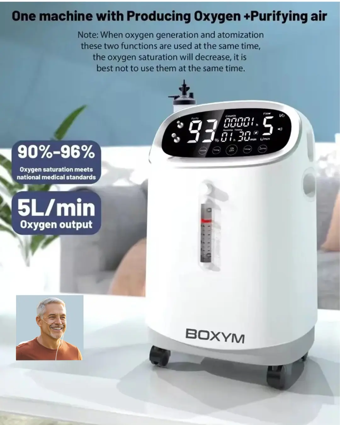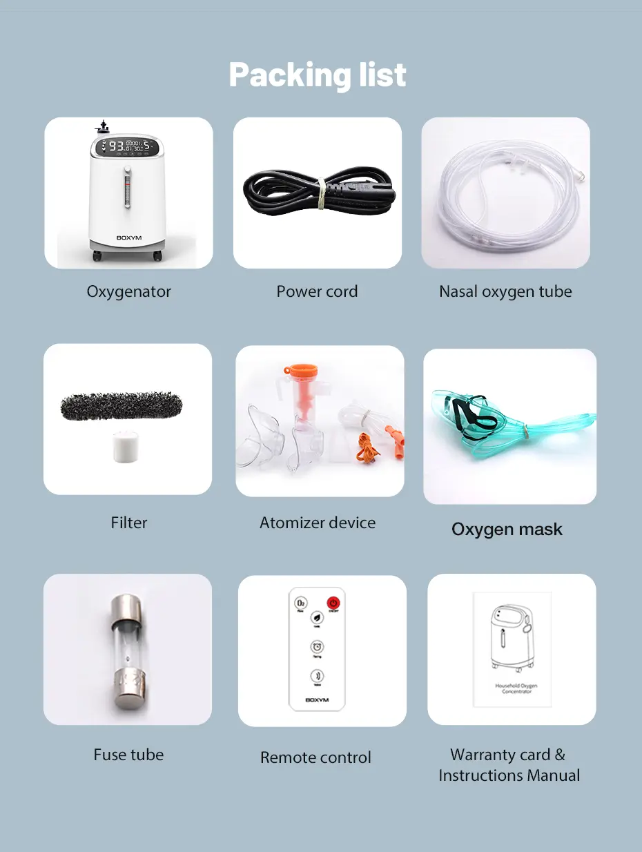 Equipado con una pantalla LED de 8 pulgadas, el generador de oxígeno de flujo continuo YK-501N 5L dispone de guía por voz, control remoto y atomización integrada. Con un funcionamiento a ≤60dB, esta máquina de 17 kg proporciona una experiencia silenciosa y suave, a la vez que admite doble voltaje (110V/220V) para un uso flexible.