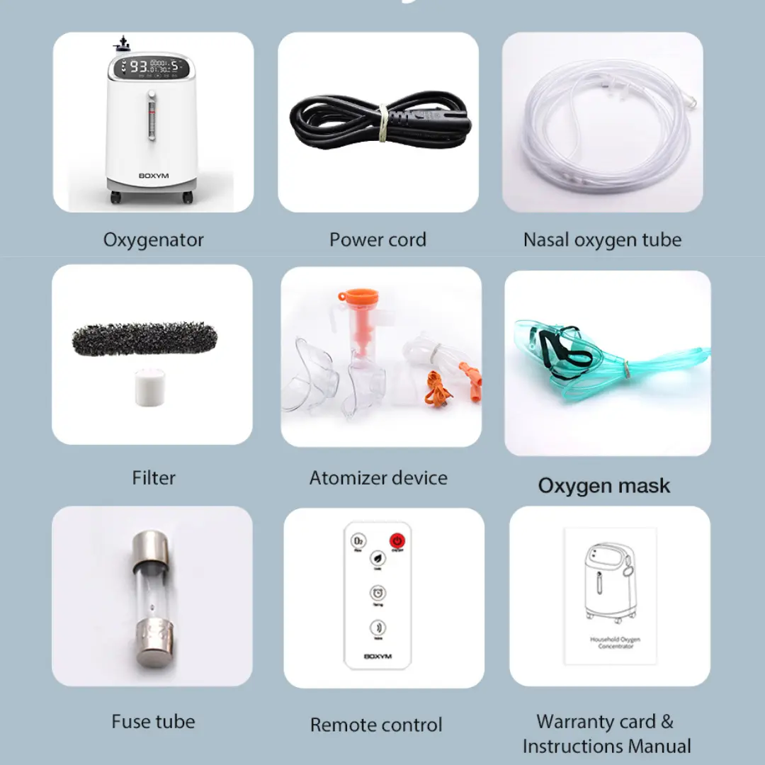 Equipado con una pantalla LED de 8 pulgadas, el generador de oxígeno de flujo continuo YK-501N 5L dispone de guía por voz, control remoto y atomización integrada. Con un funcionamiento a ≤60dB, esta máquina de 17 kg proporciona una experiencia silenciosa y suave, a la vez que admite doble voltaje (110V/220V) para un uso flexible.