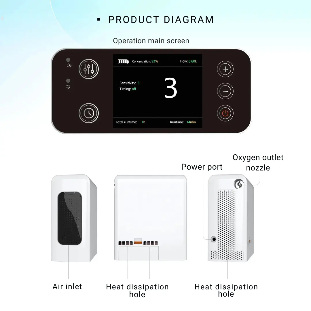 👉 Le Concentrateur d'oxygène portable KPS 1-4L assure oxygène ininterrompu à la demandeIl suffit de le charger et de l'utiliser à tout moment et en tout lieu.