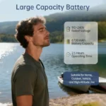 La batterie intégrée de 6700 mAh offre environ 2,5 heures de fonctionnement continu avec une charge complète. Il peut également être alimenté par une prise de courant de voiture ou une prise murale standard. peut également être alimenté par une prise de courant de voiture ou une prise murale standard.