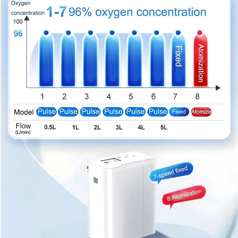 Ce concentrateur d'oxygène avec nébuliseur délivre jusqu'à 96% d'oxygène de haute pureté avec un débit réglable de 1 à 3L/min, ce qui le rend idéal pour les utilisateurs à la recherche d'une assistance en oxygène efficace à la maison ou en voyage. Doté d'un écran de 2 pouces et de commandes simples, il offre un fonctionnement fluide avec des modes de respiration intelligents et un faible niveau sonore. Sa construction compacte et son poids léger de 1,1 kg en font un compagnon pratique pour l'oxygénothérapie en déplacement, que ce soit en voiture, en altitude ou à la maison.