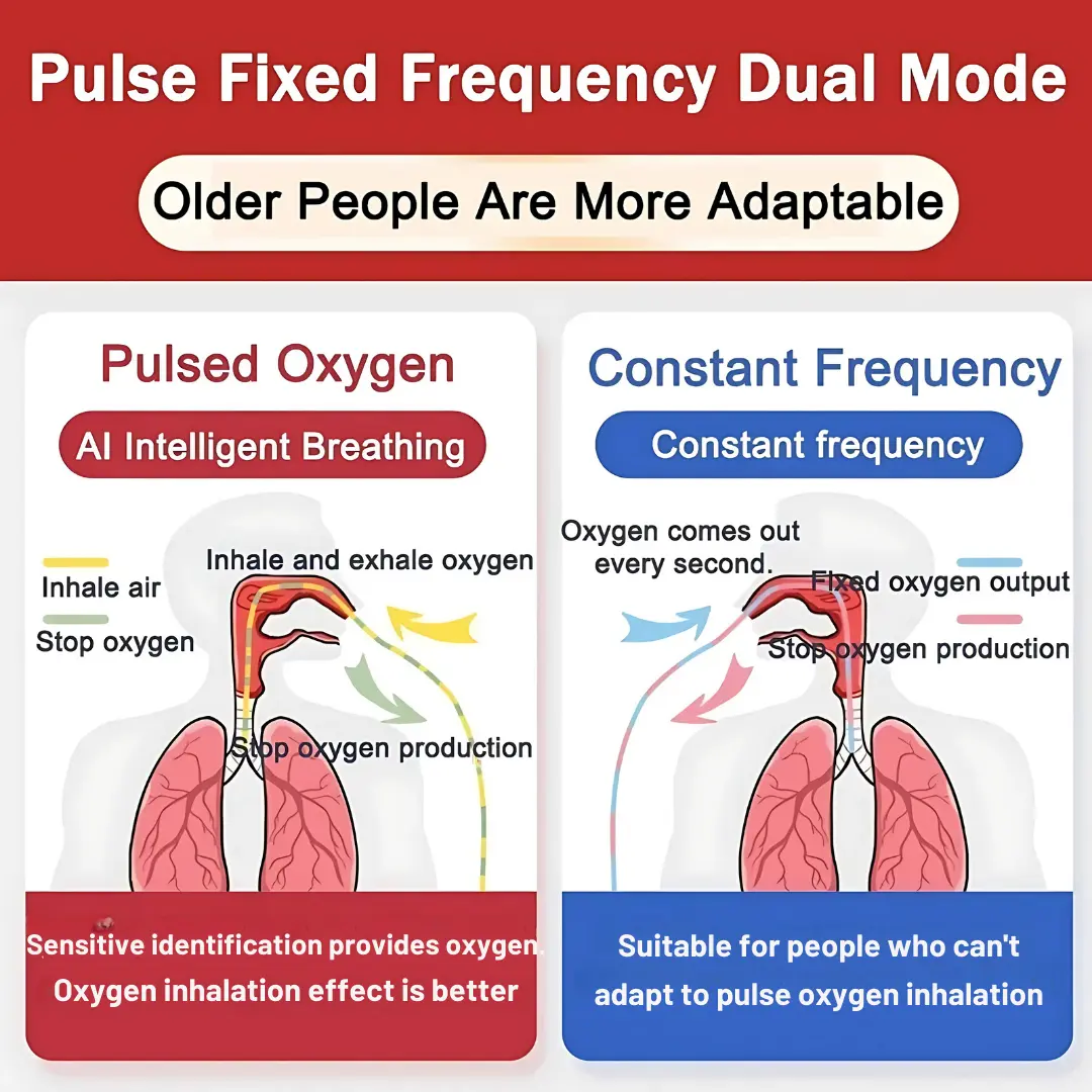 L'appareil associe l'oxygénothérapie traditionnelle à une fonction de nébulisation à haute capacité de 9L/min pour améliorer les soins respiratoires. Les utilisateurs peuvent passer de l'oxygénothérapie à la nébulisation. mode d'impulsionoù l'oxygène n'est libéré que lors de l'inhalation, ou mode fixeoffrant un flux d'oxygène continu. La double fonctionnalité répond aux besoins de différents utilisateurs, des personnes âgées aux randonneurs de haute altitude, tandis que les fonctions intelligentes de l'appareil, telles que les alarmes de défaillance, le réglage de la vitesse et les boutons de commande faciles à utiliser, garantissent une utilisation sûre et pratique.