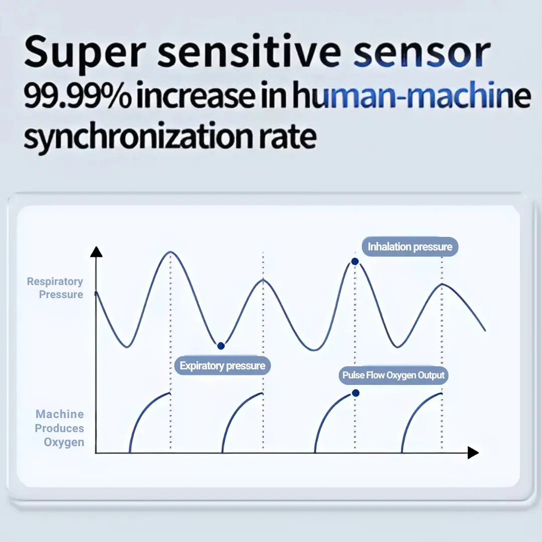 - La détection intelligente de la respiration permet d'ajuster l'apport d'oxygène.
