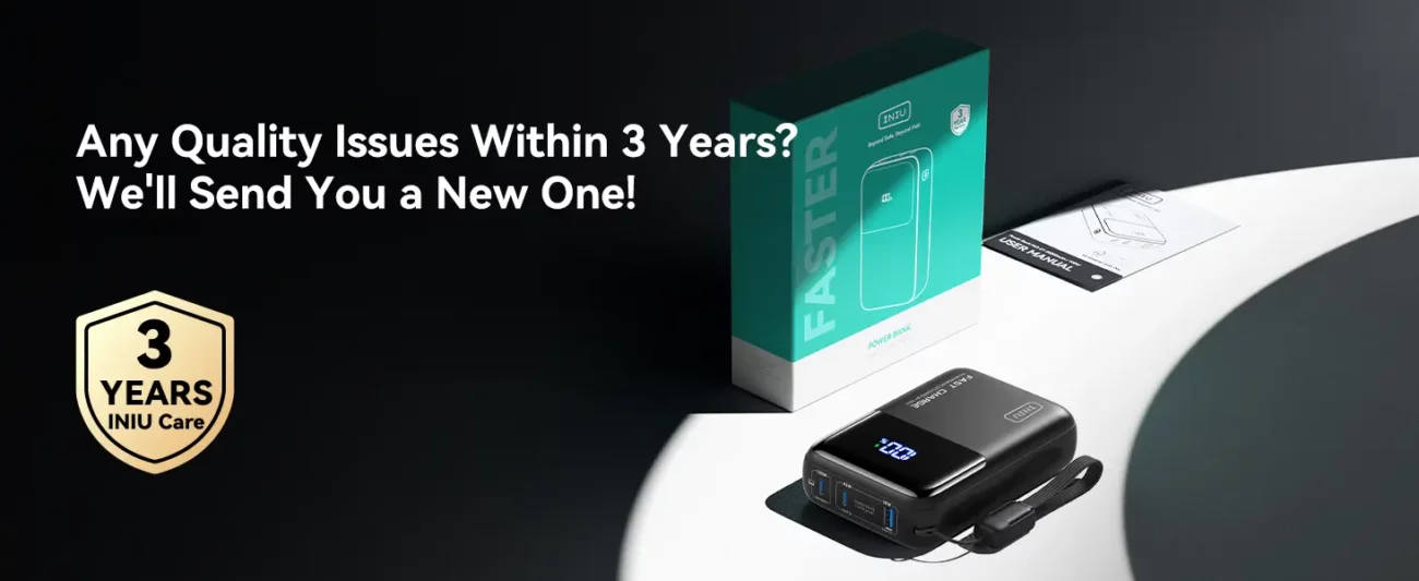 • Cosa si ottiene: INIU 100W battery bank*1, cavo da USB C a USB C da 0,3m/1ft*1, manuale d'uso*1. Godetevi l'assistenza iNiu di 3 anni, leader del settore, per qualsiasi problema di qualità, vi invieremo un nuovo prodotto.