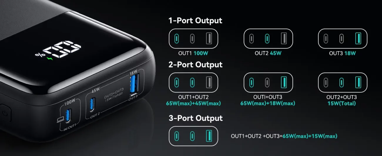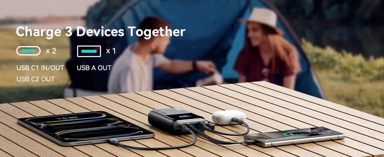 • INIU Mini Power Bank Pronto per iPhone e MacBook in 25 minuti: Un must per chi utilizza più dispositivi, questo power bank fornisce una ricarica ad alta velocità fino a 110W per 2 dispositivi contemporaneamente. In soli 25 minuti, può caricare il MacBook Pro 14″ a 42% e l'iPhone 15 a 62%.