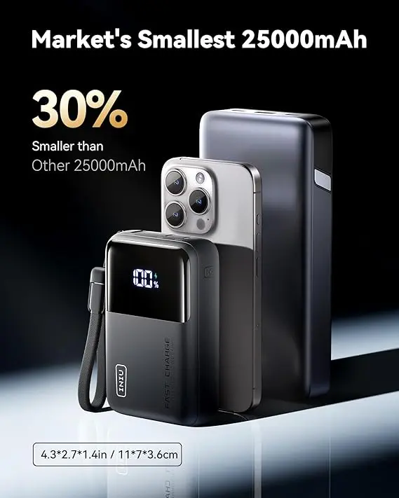 • Mini banca di energia INIU Il più piccolo 100W 25000mAh del mercato: dotato di TinyCell ad alta densità e dell'innovativa tecnologia HyperStack di iNiu, questo power bank supera i limiti di dimensioni dei caricabatterie ad alta capacità. Niente più mattoni ingombranti, solo portabilità compatta.