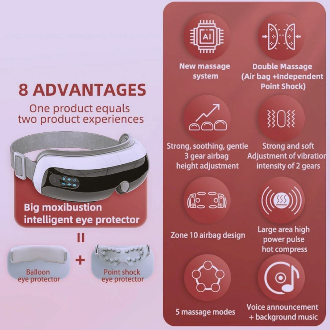 884 Acupoint Massage • 5 Smart Modes • 3-Strength Adjustment – Relieve Eye Strain in 15 Minutes!