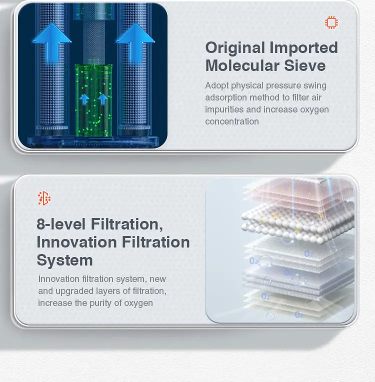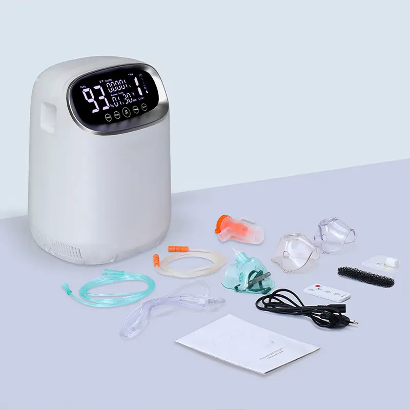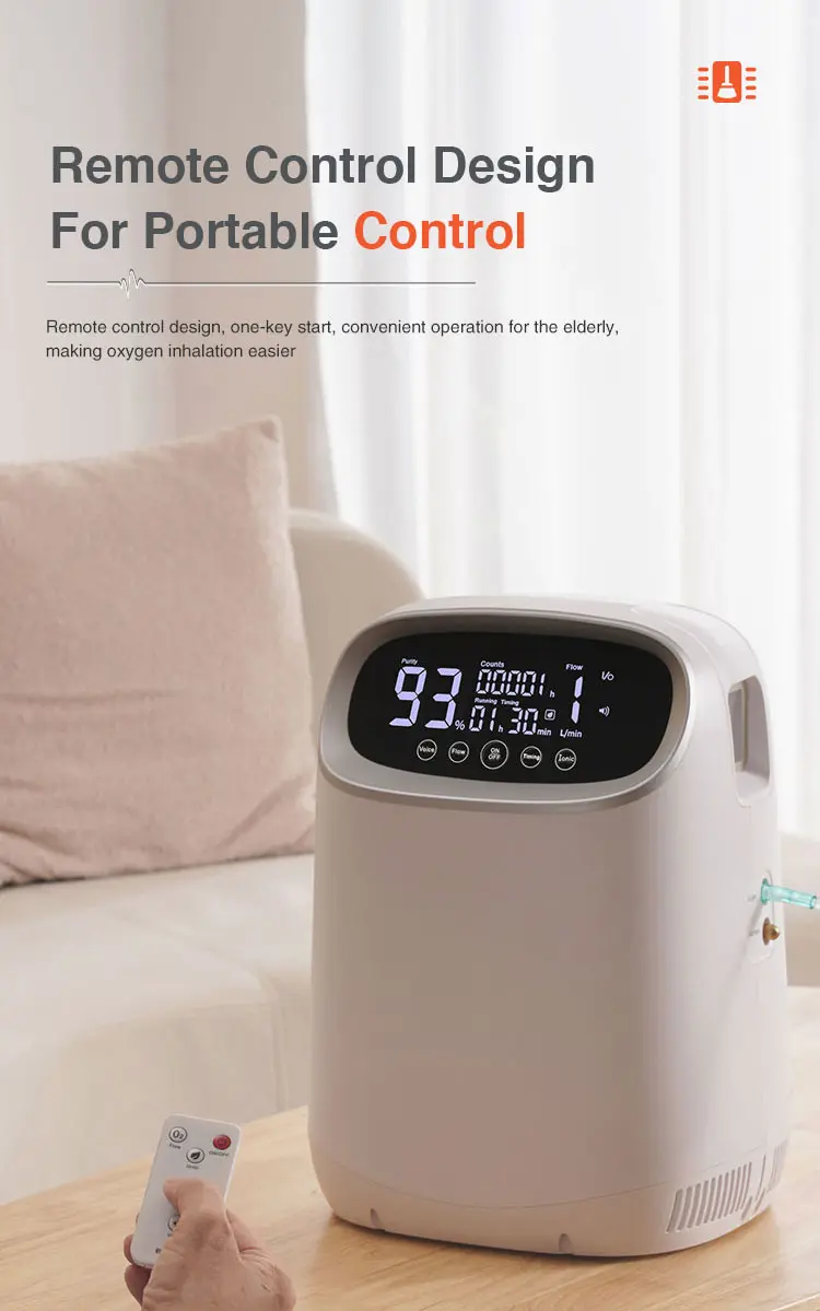 This 6kg Home Oxygen Generator Machine 7L includes a large 8-inch display, remote control, atomizing function, and noise reduction system for a quiet experience. It comes equipped with intelligent alarms, power failure alerts, and dual operation via touch or remote, making it reliable and easy to operate for any user.