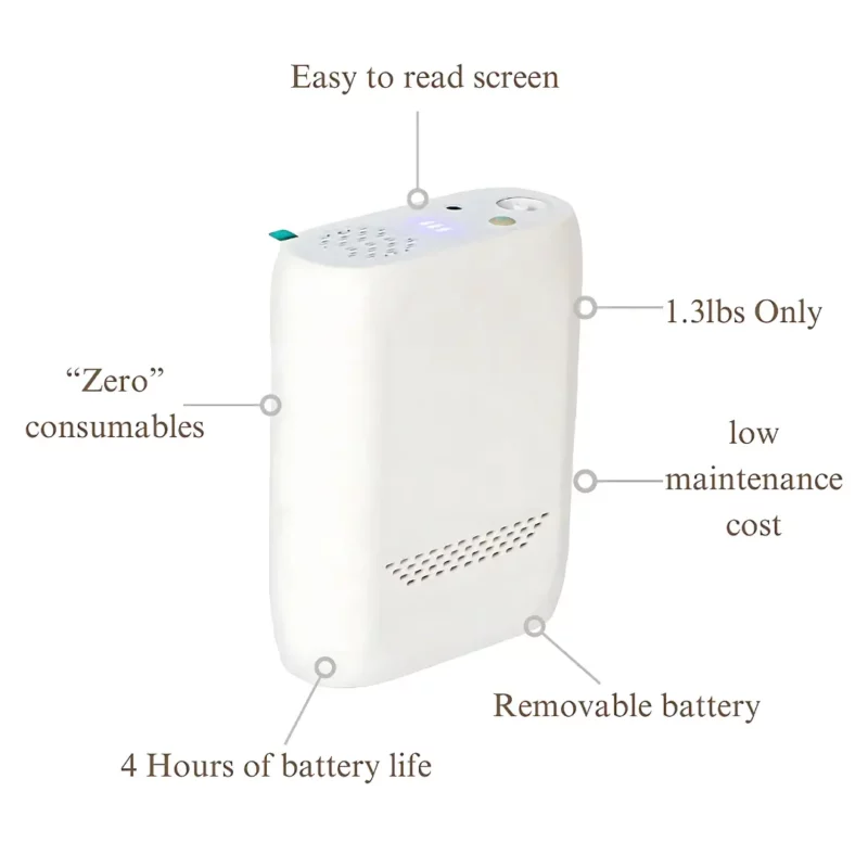 Portable Oxygen Generator Machine 2L – Ultra-Light 1.3Lbs | 4H Battery | Travel Ready